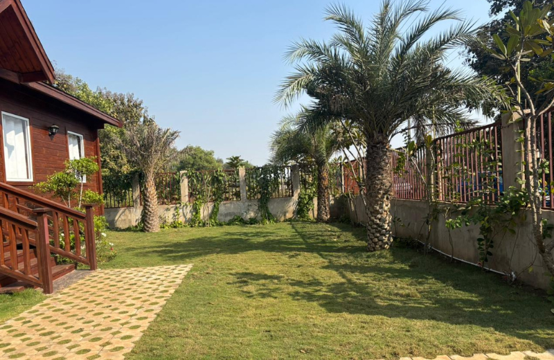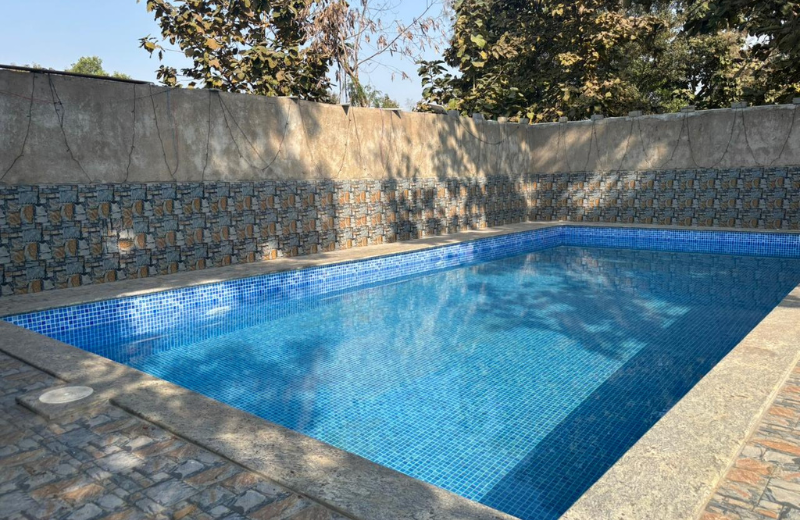 This is a beautiful 1BHK farm stay located in Nakti villages, Near VIP Road, Raipur. Its newly constructed wooden villa and it has 1 Room with attached washrooms and Living area, this complete staycation is very well maintained with amenities like air conditioned rooms, living area, swimming pool and a cozy lawn. In this farm stay you can host your small gathering & get-togethers.