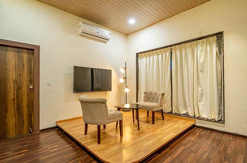 This is a beautiful villa in Raipur which is very beautifully developed and very well maintained where you will get a lot of fun, activities and family time. This farmhouse has spacious Lawn area, 4 air-conditioned bedrooms, 1 air-conditioned hall and a beautiful kitchen area with Induction System, Refrigerator, necessary utensils and crockeries. In this villa you can host open-air lawn parties, birthday parties, bachelors parties & luxurious get-togethers.
