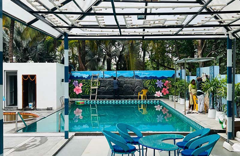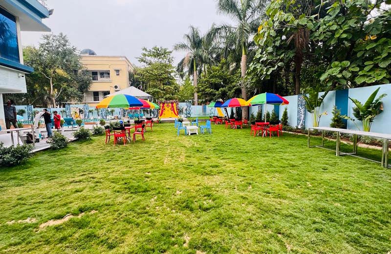 This is a very beautiful farmhouse in Mahavir Enclave, B-1, Datrenga Road, Raipur, Chhattisgarh. It is a newly constructed and well furnished farmhouse where you will have a lot of fun activities and you can spend quality time with your friends and family. This farmhouse has 1 spacious hall, 4 beautiful air-conditioned rooms, a Dining area and a Kitchen. This farmhouse has 5 washrooms. It has 800 sq. feet of swimming pool and a separate 150 square feet area for kids pool which is perfect for your pool party. In this farmhouse you can also get the rain dance facilities. This farmhouse has more than 3000 Sq. feet of lawn area where you can host your open-air lawn parties, birthday parties, anniversary parties and get-togethers.